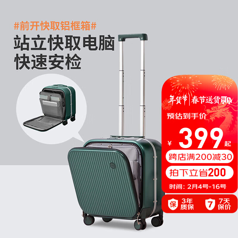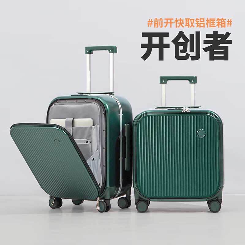 米熙mixi行李箱女前开盖铝框箱子密码箱男小登机箱旅行箱18英寸墨绿70价格:599.00元!