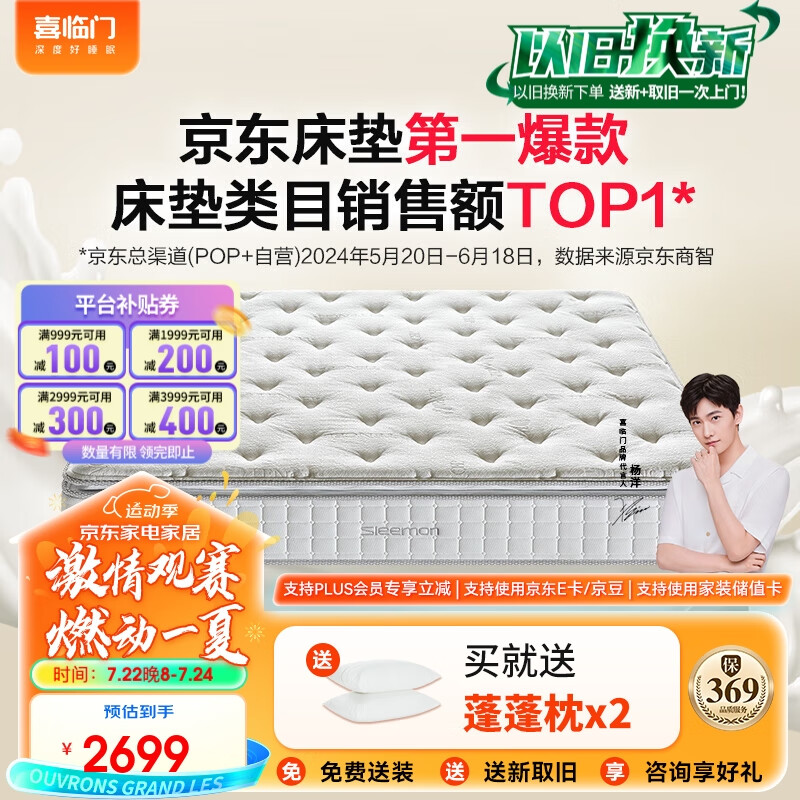 喜临门床垫 2cm高纯乳胶独袋弹簧床垫 3D黄麻床垫 白骑士plus 2x2.2米价格:2779.00元!