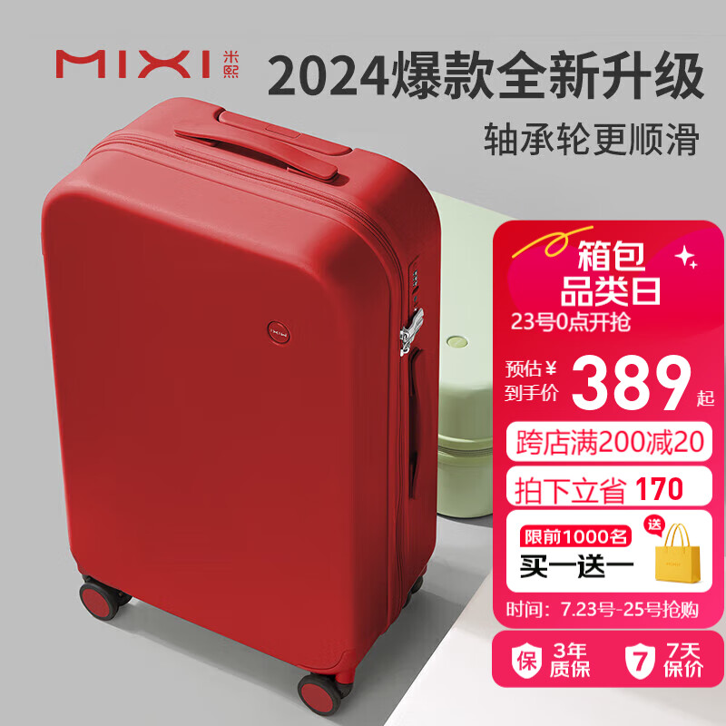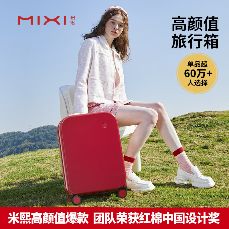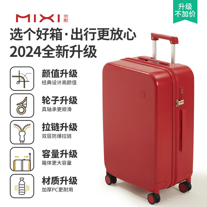 米熙mixi红色行李箱结婚陪嫁拉杆箱子旅行箱女密码箱男24英寸复古红36价格:559.00元!