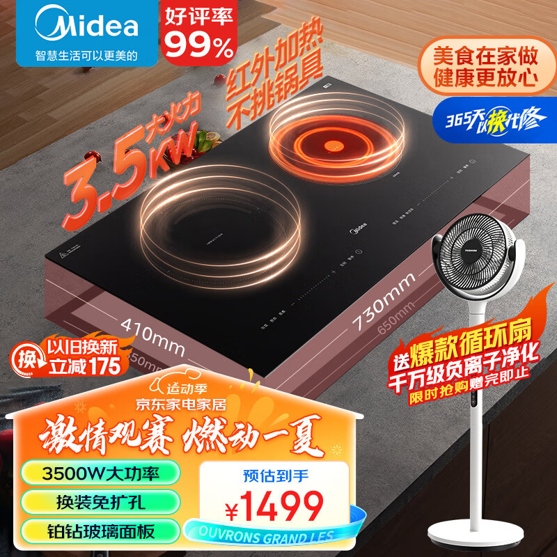 美的(Midea)电磁炉双灶 电磁灶家用3500W大功率双头灶电陶炉 一电一陶嵌入式 定时功能滑触双控 MC-DZ35D05E价格:1499.00元!