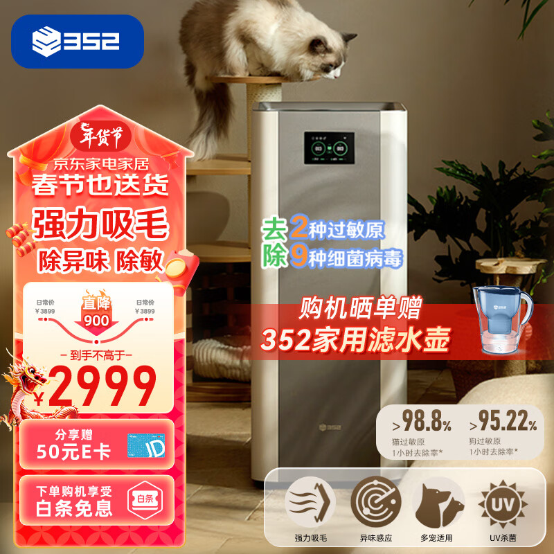 352空气净化器 宠物款猫毛净化器除菌吸毛除异味过敏原除尘螨甲醛 家用吸浮毛 X63 Pet 多宠适用价格:3199.00元!