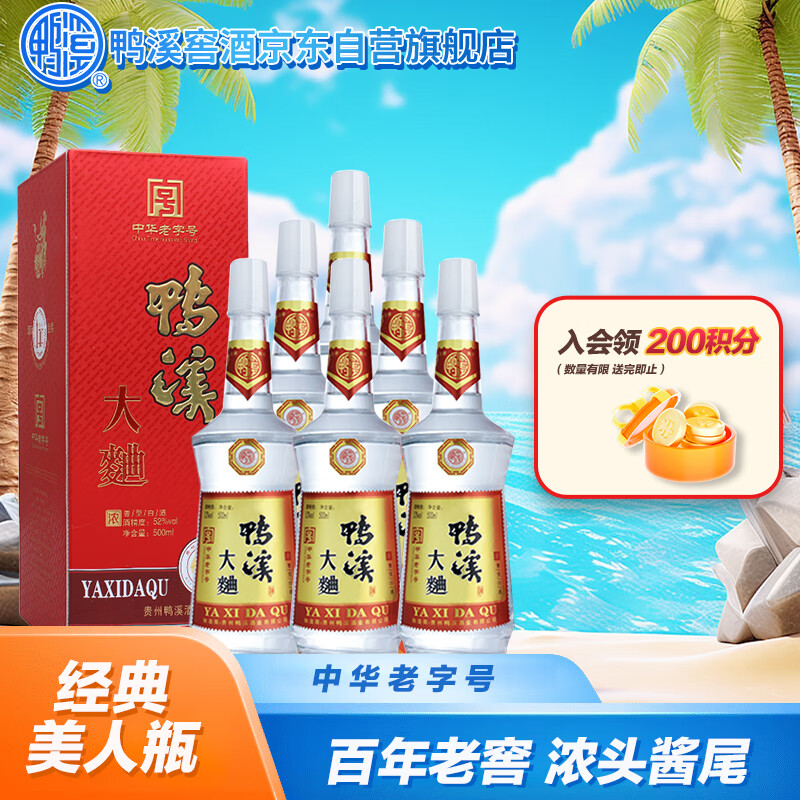 鸭溪窖 大曲 浓香型白酒 52度 500ml*6瓶 整箱装价格:352.00元!