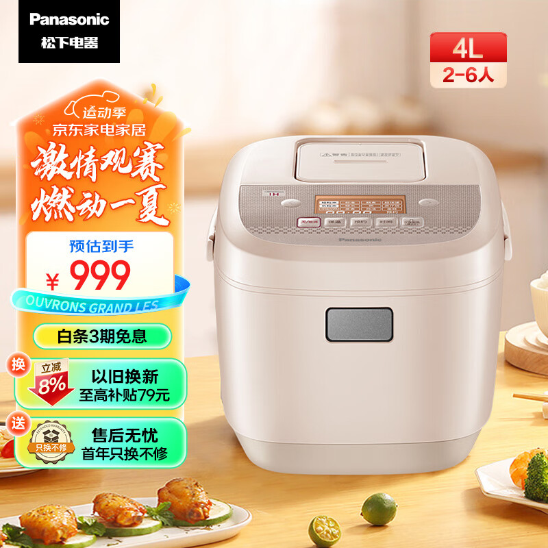 松下(Panasonic)电饭煲电饭锅4L远红外立体包裹式加热IH电磁加热1-6人可预约智能多功能电饭煲 粉SR-HR152-R价格:799.00元!