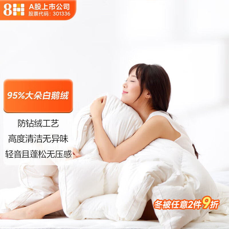 8H95%大朵白鹅绒Y1双人加厚防钻绒羽绒被芯 冬被1700g220*240cm白色价格:2019.00元!