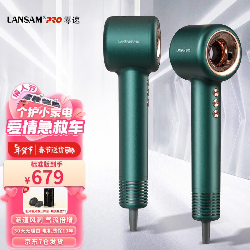 LANSAM零速吹风机家用风筒负离子护发高速大功率大风力速干不伤发理发店发廊用电吹风 标准版-典雅绿价格:1099.00元!