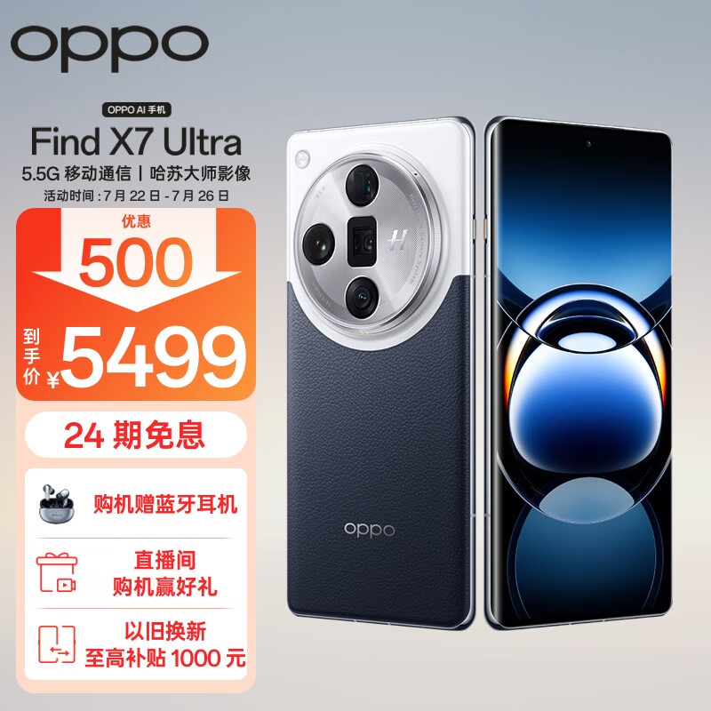 OPPO Find X7 Ultra 12GB+256GB 海阔天空 1英寸双潜望四主摄 哈苏影像 第三代骁龙8 5.5G 拍照 AI手机价格:5499.00元!