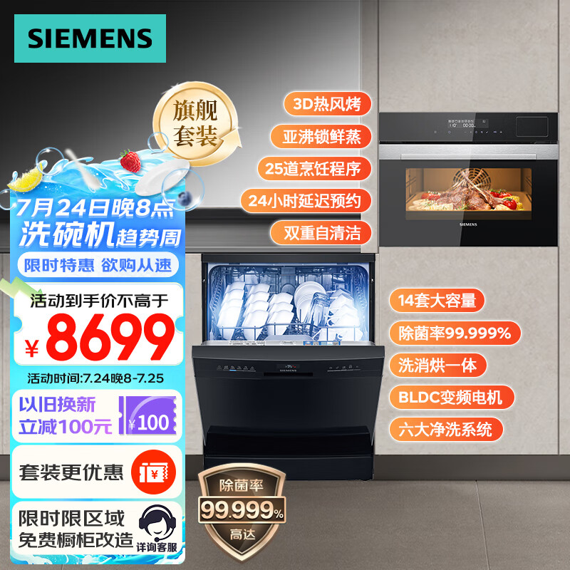西门子洗嵌套装 14套大容量家用洗碗机+嵌入式蒸烤一体机组合套装 SJ23HB66KC+CS389ABS0W价格:8699.00元!
