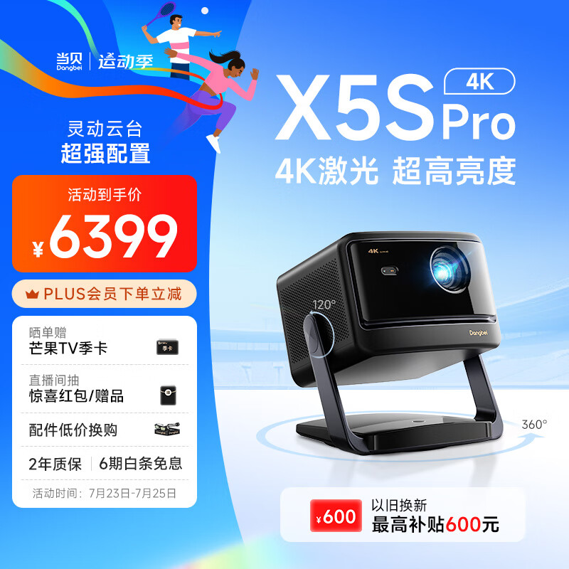 当贝X5SPro 激光4K云台投影仪家用 卧室办公家庭游戏投影4G+128G MT9679大师芯片价格:6399.00元!