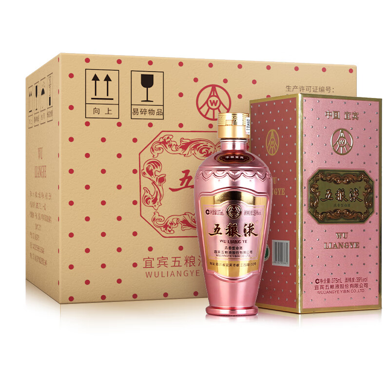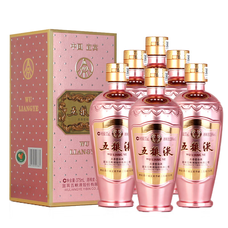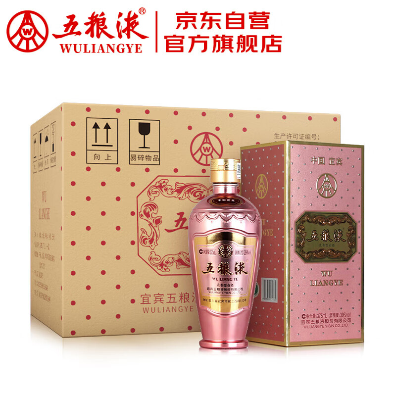 五粮液 玫瑰金 浓香型白酒 39度 375ml*6瓶 整箱装 送礼佳品价格:3954.00元!