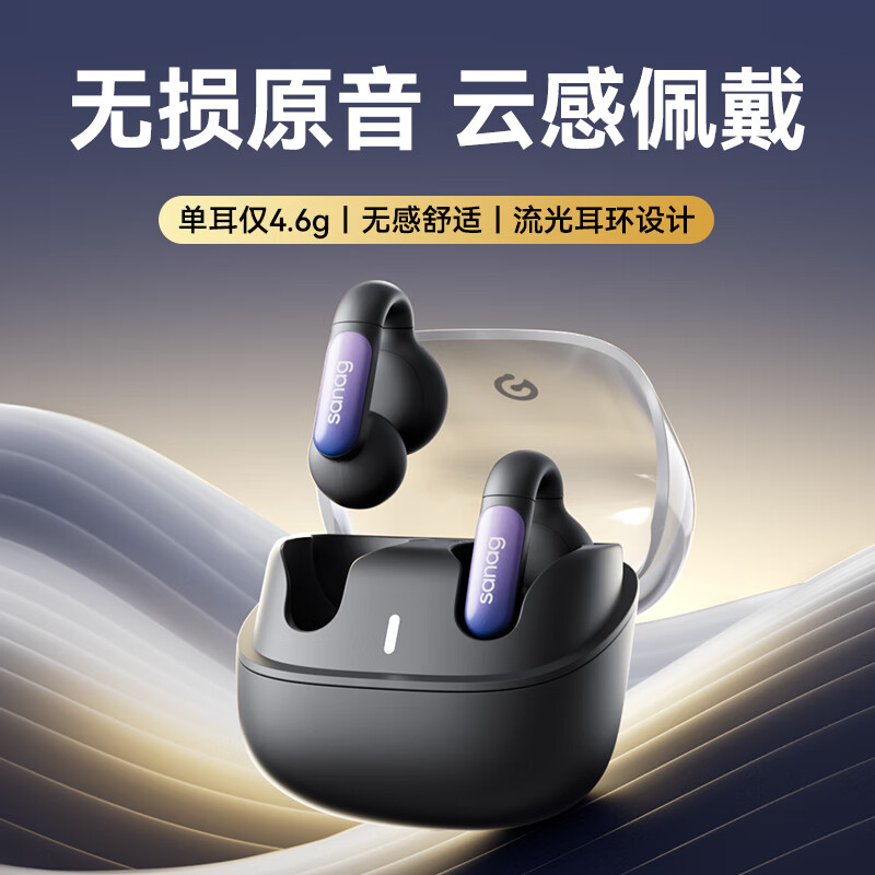 SANAG塞那【耳夹新定义】骨传导概念蓝牙耳机开放式无线耳环夹耳式不入耳挂耳夹式运动通话降噪 骑士黑|超宽频空间音效|无感舒适价格:499.00元!