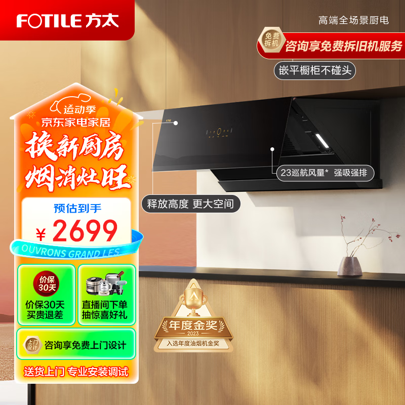 方太家用侧吸抽油烟机 23m/min大吸力 直流变频 智能巡航 小尺寸 01-JCD10TA价格:2699.00元!