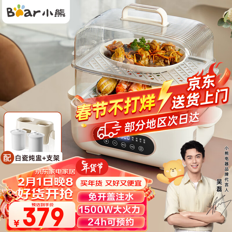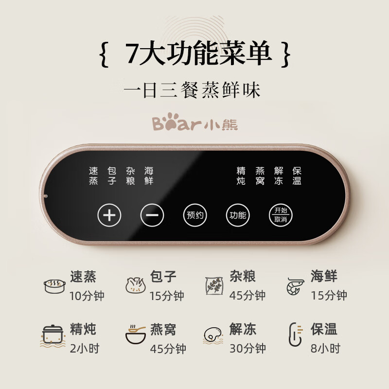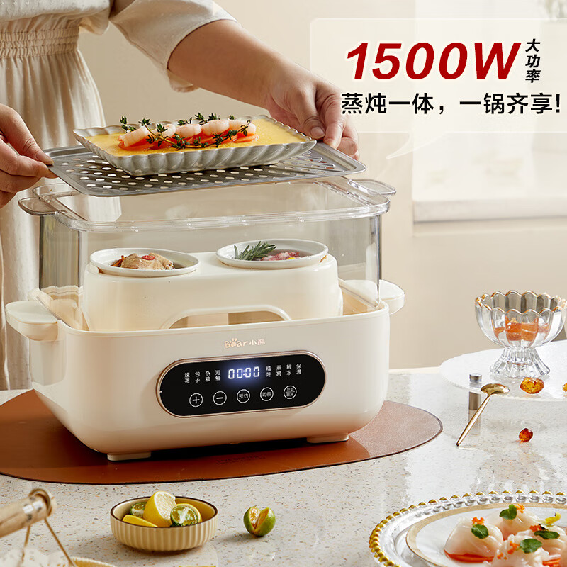小熊(Bear)电蒸锅 蒸炖锅 蒸蛋器 蒸锅家用 电蒸笼 多功能早餐包子机电热煮锅可预约定时智能 DZG-P50H1价格:379.00元!