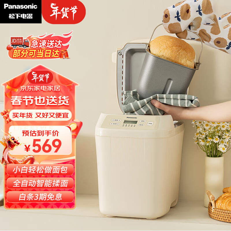 松下(Panasonic)面包机 家用烤面包机 揉面和面机可预约魔法小白桶SD-PN100价格:569.00元!