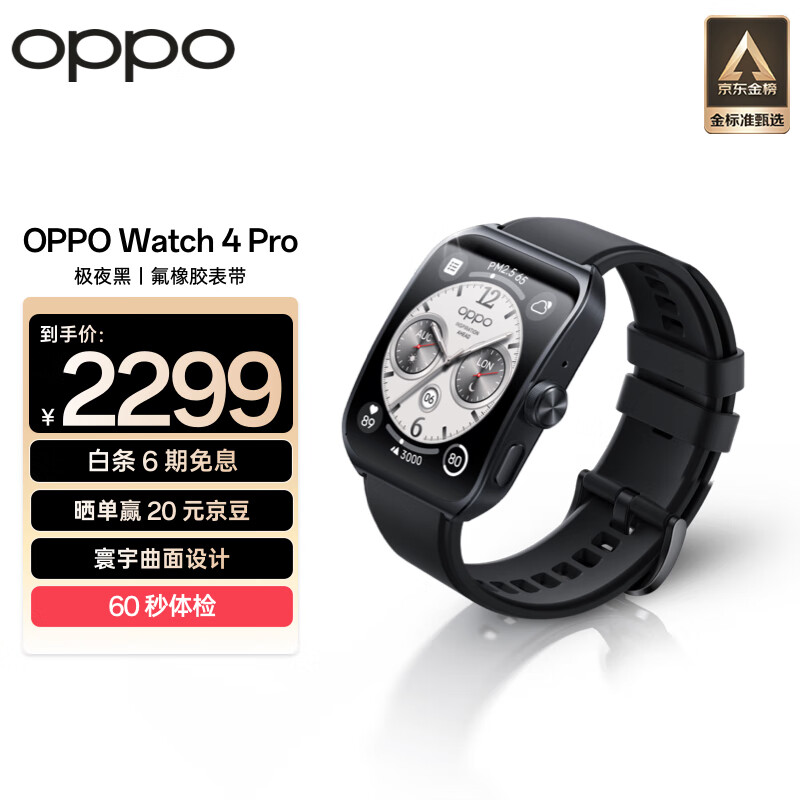 OPPO Watch 4 Pro 极夜黑 全智能手表 运动健康手表男女eSIM电话手表 心电图心率血氧监测 一加价格:2299.00元!