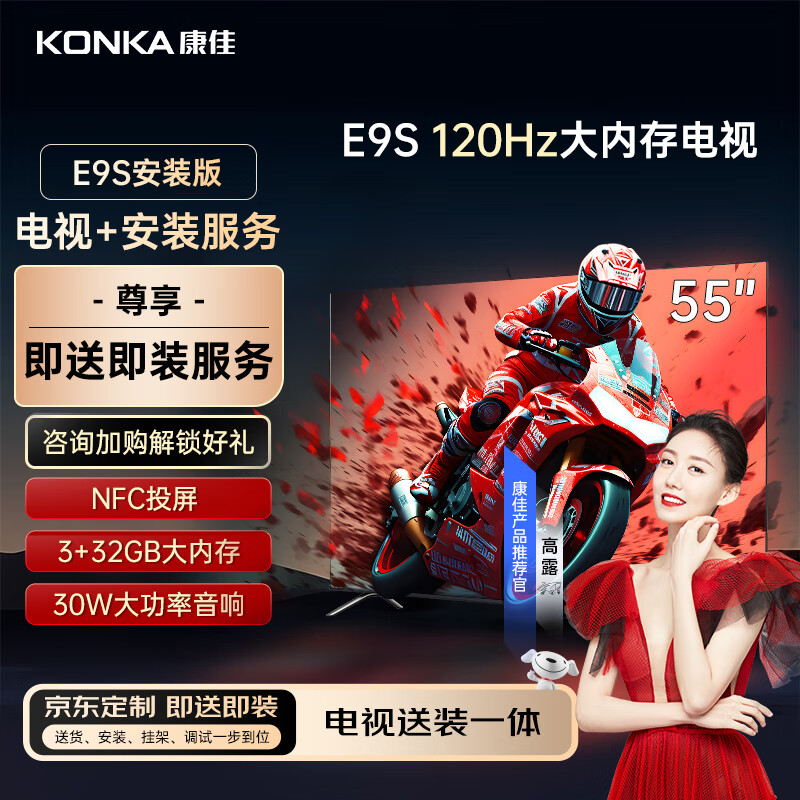康佳电视 55E9S 55英寸【包安装版】120Hz MEMC 液晶平板电视机【服务套装】送装一体含挂架价格:1898.00元!