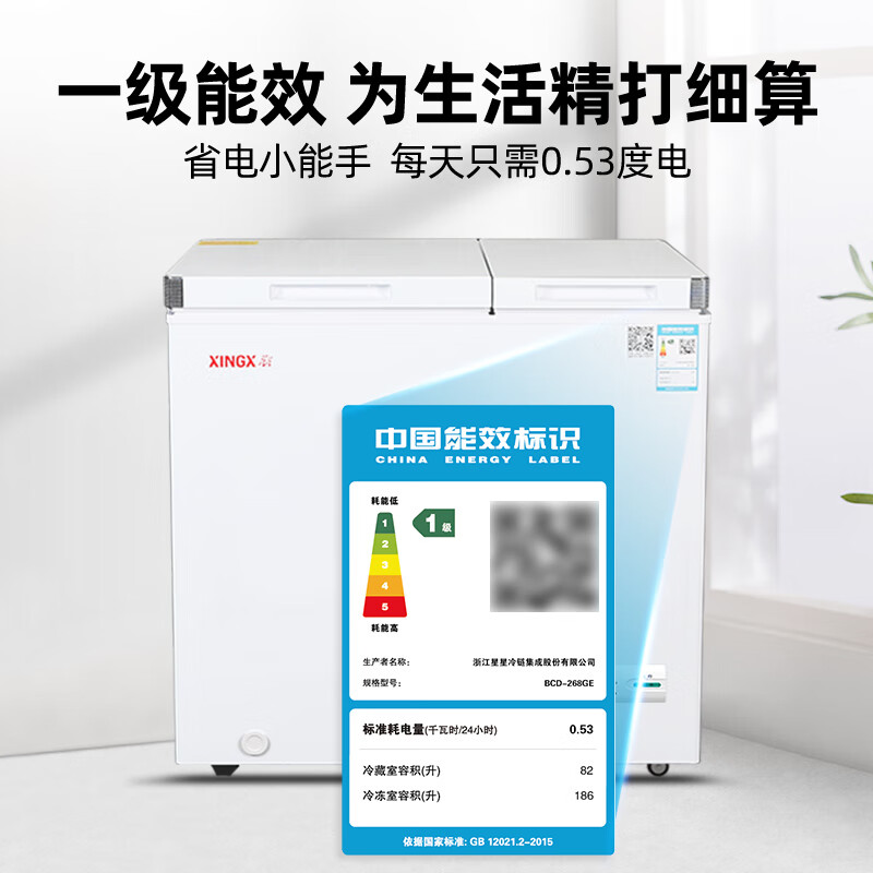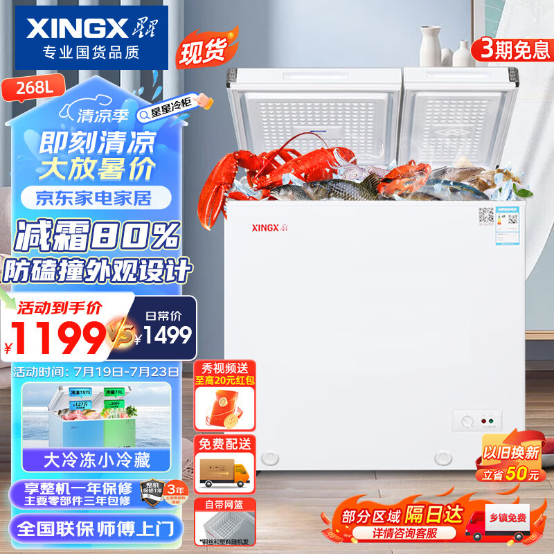 星星(XINGX) 268升小型冰柜双温家用双箱冷柜 左冷冻右冷藏 商用卧式减霜顶开门冰箱 BCD-268GE价格:1199.00元!