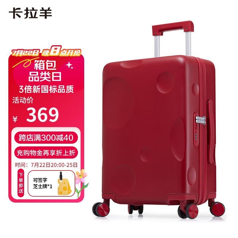 卡拉羊芝士箱防刮纯PC行李箱20英寸可登机女拉杆箱男旅行箱8109波尔多红价格:469.00元!