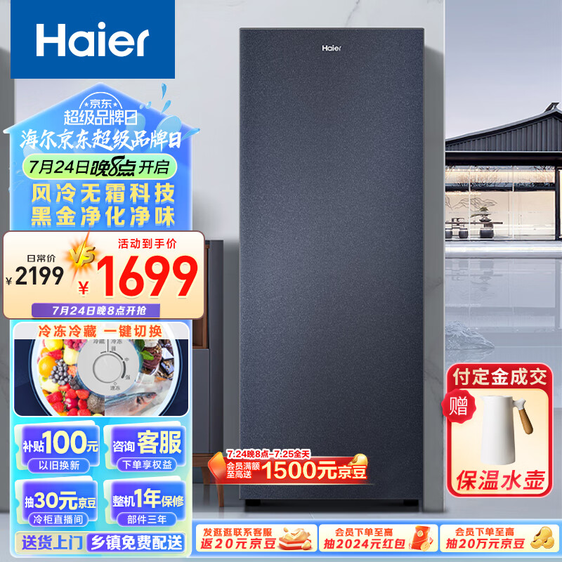 海尔(Haier)国瓷系列150升风冷家用立式冷藏冷冻柜抽屉式冷柜小冰柜家用小冰箱BD-150WGHB9D以旧换新价格:1699.00元!