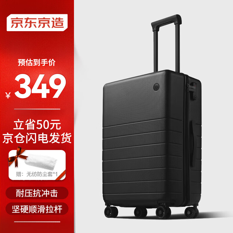 京东京造 无界行李箱24英寸拉杆箱旅行箱男女PC托运大容量 暮云黑价格:399.00元!