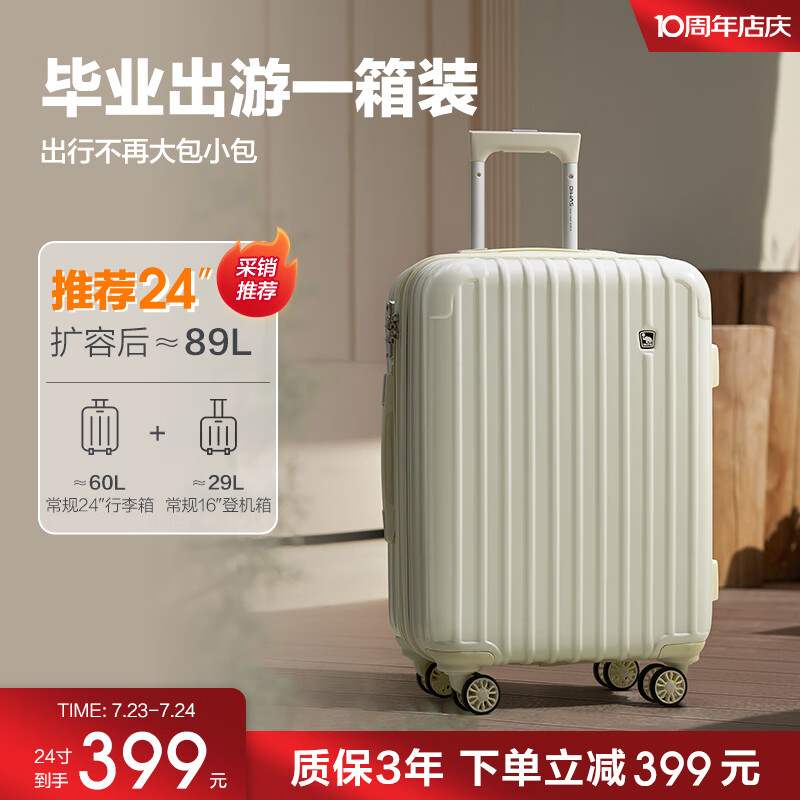 爱华仕行李箱女拉杆箱男旅行箱大容量密码箱24英寸可扩展学生箱珍珠白价格:798.00元!