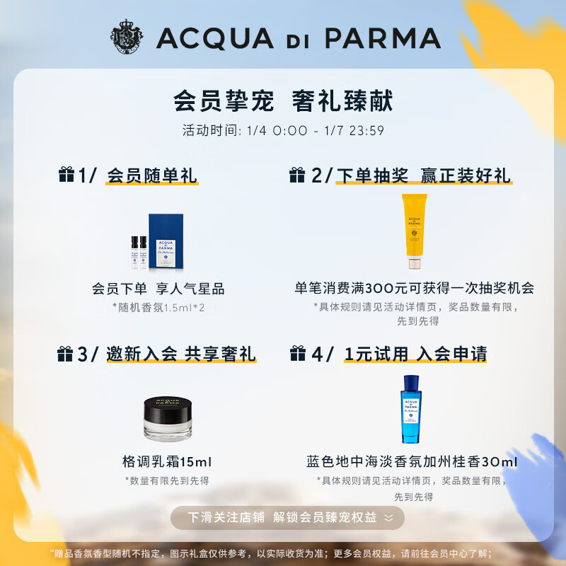 帕尔玛之水(ACQUA DI PARMA)蓝色地中海淡香水(加州桂香)30ml 柑橘调 调色盘 生日礼物送女友价格:675.00元!