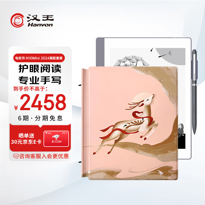 汉王(Hanvon)N10mini2024手写电纸本 7.8英寸电子书阅读器电纸书智能办公本4+64版敦煌联名款九色鹿保护套.套装价格:2458.00元!