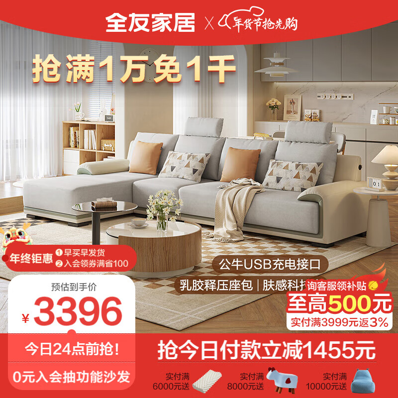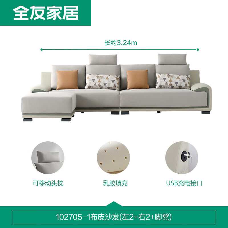 全友家居 沙发现代简约科技布沙发充电功能小户型客厅沙发座具102705价格:4851.43元!
