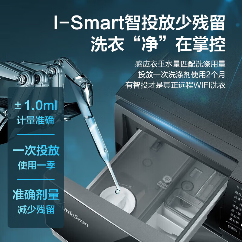 特色功能:智能投放,儿童锁,防缠绕,筒自洁,预约功能,中途添衣,Wi-Fi连接