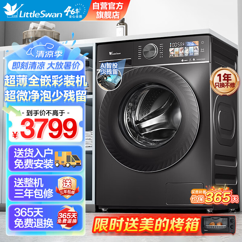 小天鹅(LittleSwan)10公斤全自动滚筒洗衣机 智能投放 超薄全嵌超微净泡小乌梅RVIC同款【500mm超薄】巨幕屏价格:3569.00元!
