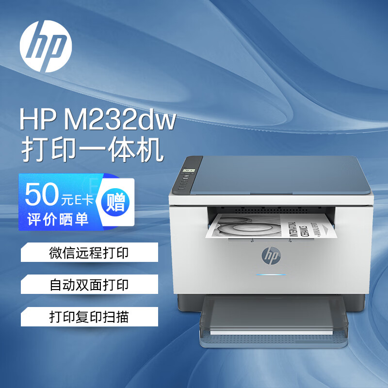惠普(HP)M232dw 自动双面无线激光打印机 学生家用 高速高效(低成本 体积小)(跃系列)价格:1299.00元!