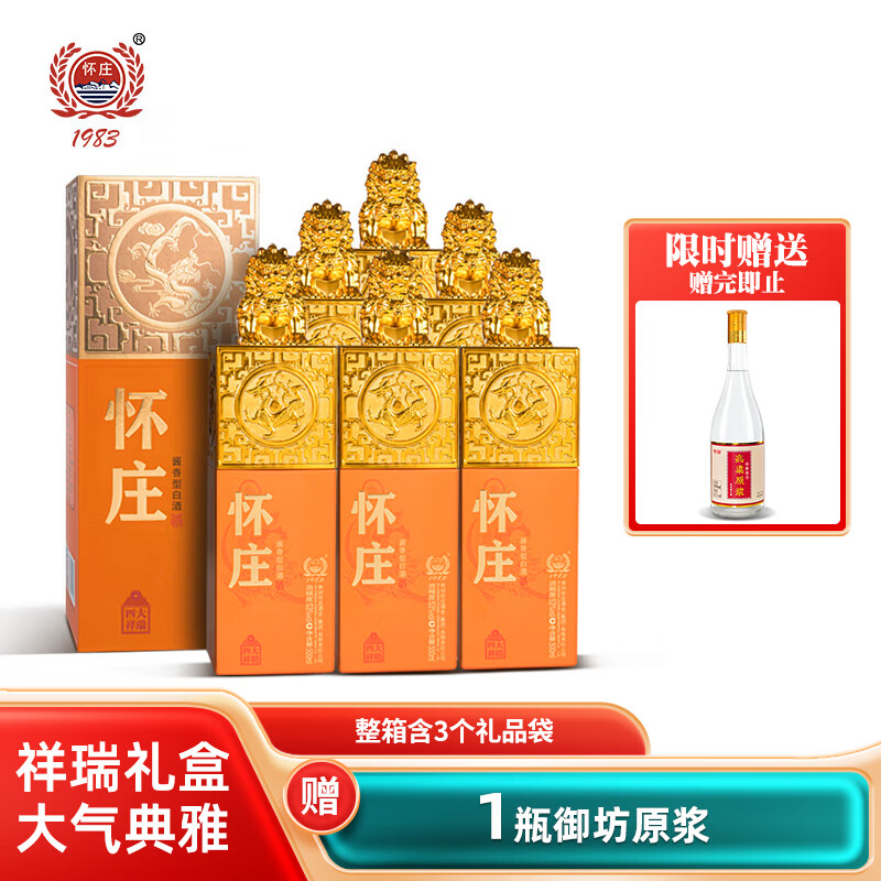 怀庄1983 四大祥瑞 酱香型白酒纯粮酒 53度 500mL*6瓶整装 宴请送礼价格:358.00元!