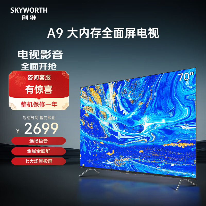 创维电视 70A9 电视机 70英寸 2+16G 远场声控 护眼防蓝光 超薄屏 平板电视 以旧换新价格:2699.00元!