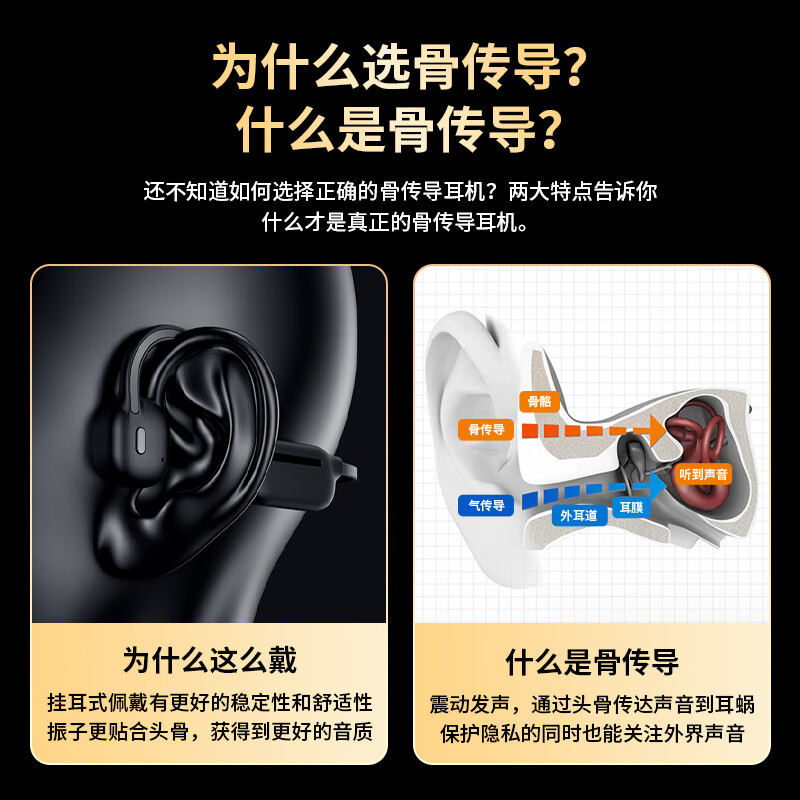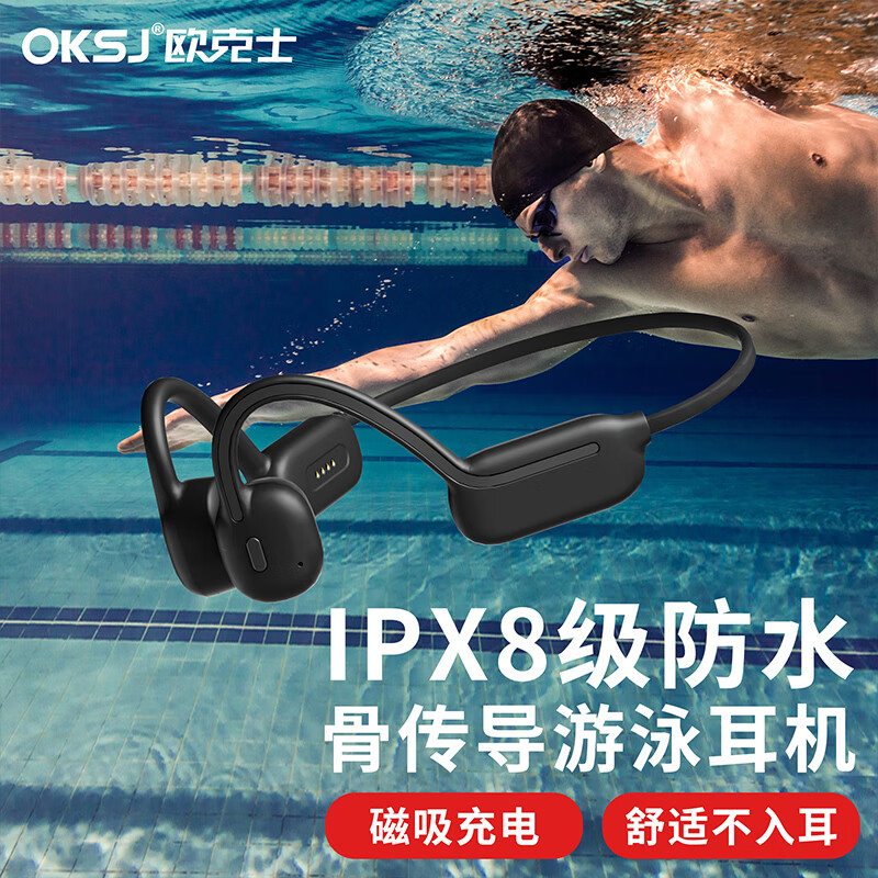 OKSJ骨传导耳机 蓝牙耳机游泳8级防水运动无线不入耳挂耳式 降噪防汗跑步健身骑行价格:195.00元!