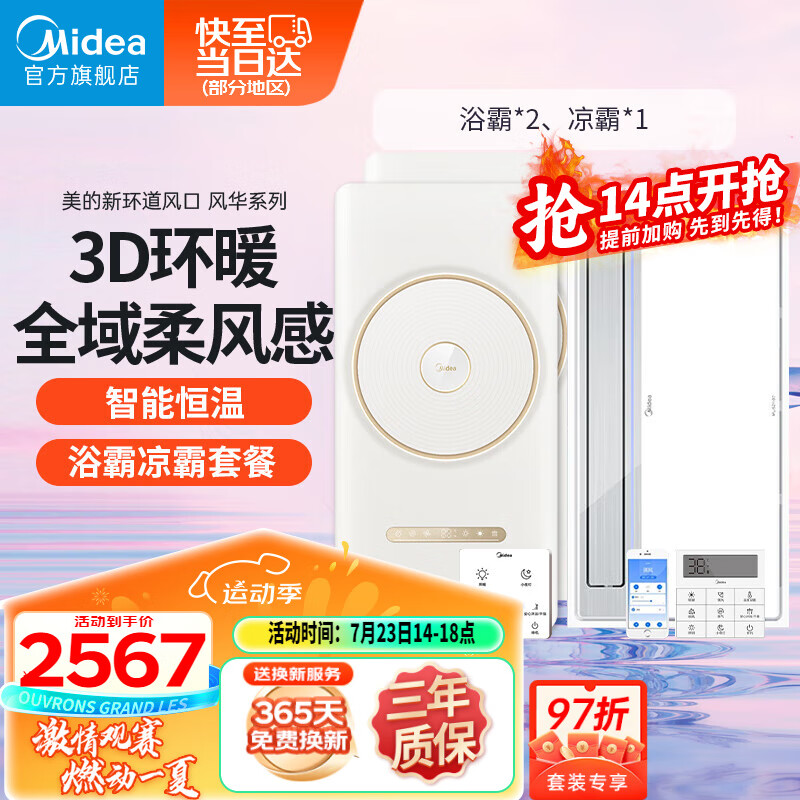 美的(Midea)风暖环形浴霸智能浴室排气取暖器卫生间集成吊顶双电机风华暖风机价格:2567.00元!