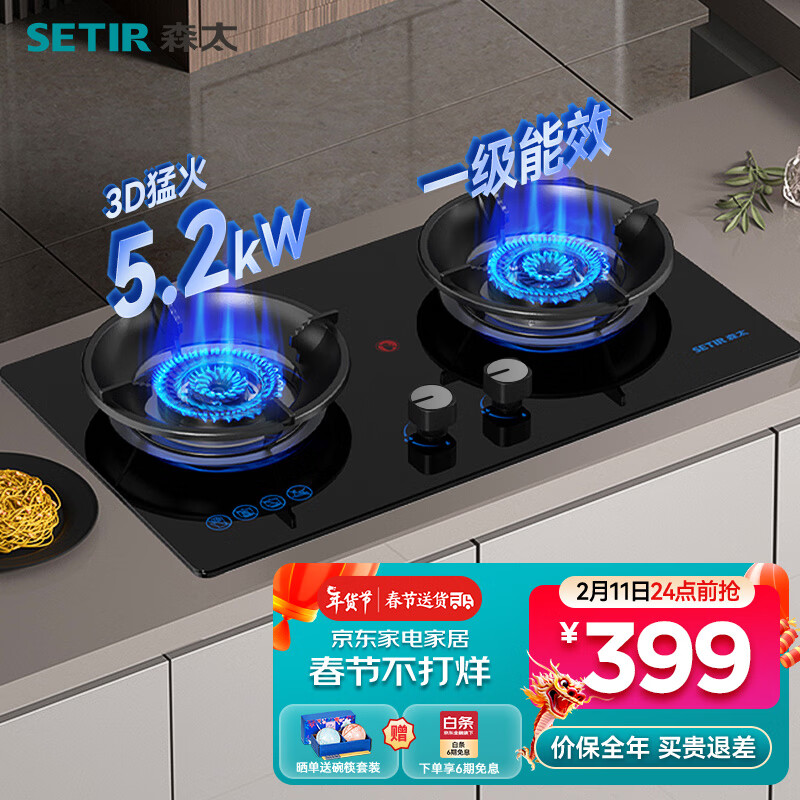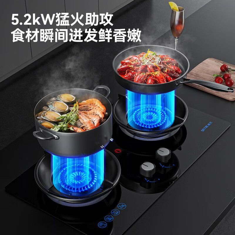 森太(SETIR) 燃气灶煤气灶双灶具天然气灶液化气灶嵌入式猛火灶煤气炉猛火灶 【5.2kW天然气】聚能蓝焰灶价格:499.00元!
