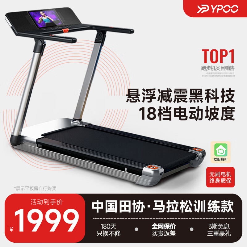 易跑【中国田协官方供应商】M1马拉松跑步机家庭用爬坡折叠健身房器材价格:1999.00元!