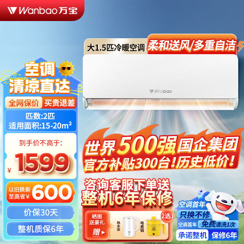 万宝大1.5匹空调挂机 新三级能效变频家用卧室节能空调快速冷暖 KFR-35GW/BPWB3-N3 含基础安装价格:1599.00元!