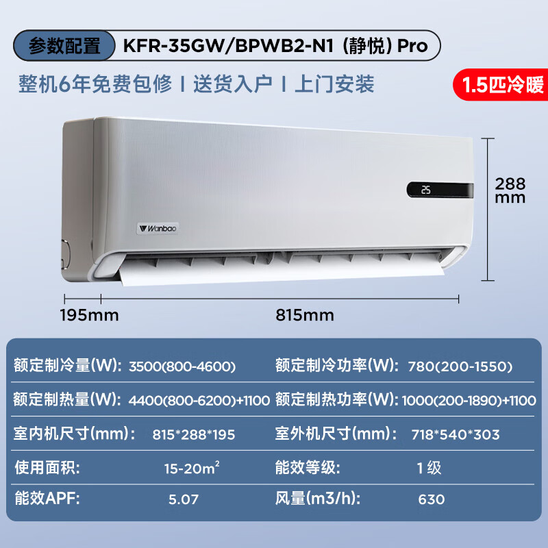 万宝KFR-35GW/BPWB2-N1 (PRO)配置参数: