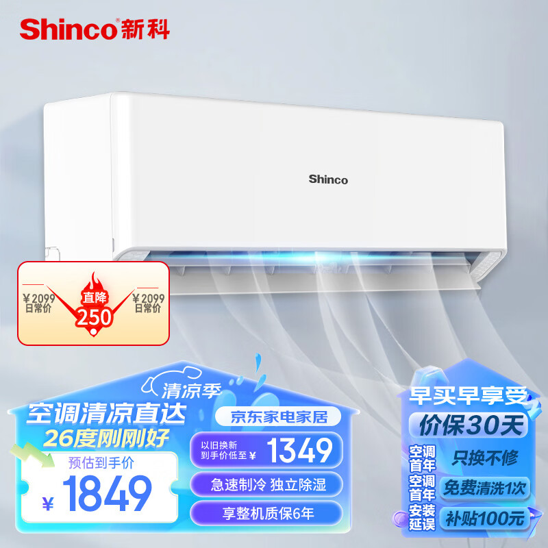 新科(Shinco)1.5匹 变频新一级能效 快速冷暖 壁挂式 卧室空调挂机 KFRd-35GW/DSQ+B1 以旧换新价格:1799.00元!