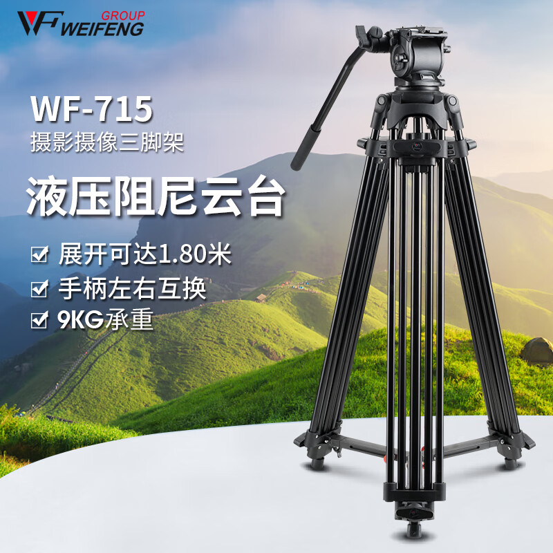 伟峰 WF-715 铝合金DV三脚架1.8米专业摄影摄像机脚架 液压阻尼云台三角架 演唱会直播户外落地支架价格:468.00元!