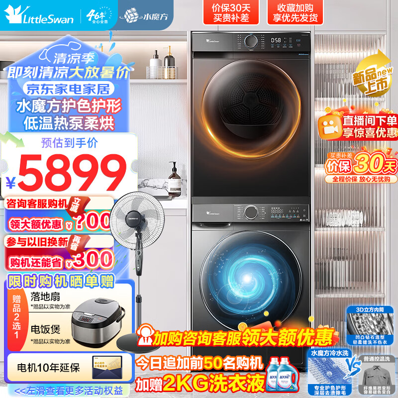 小天鹅(LittleSwan)洗烘套装1.1洗净比 10KG家用滚筒洗衣机 热泵烘干机 水魔方银离子除菌 TG100V868PLUS+TH100VH02T价格:5899.00元!