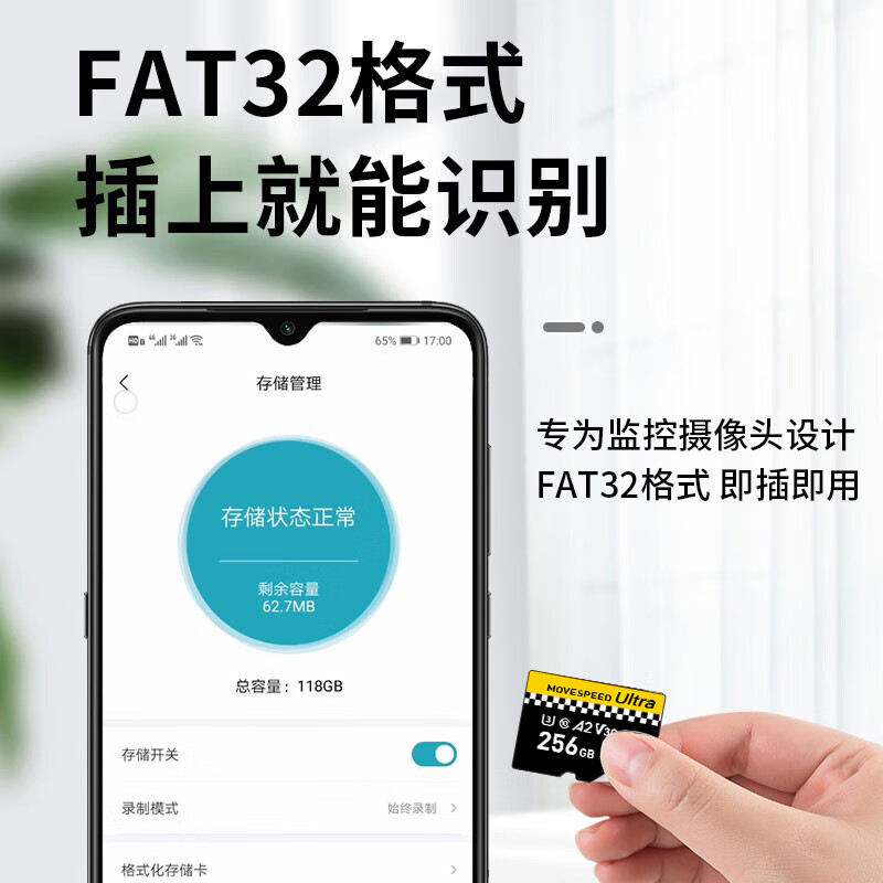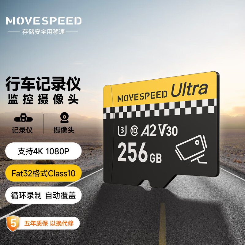 移速(MOVE SPEED)256GB TF(MicroSD)存储卡 行车记录仪内存卡监控摄像头小米U3 V30相机储存卡高速耐用价格:149.00元!