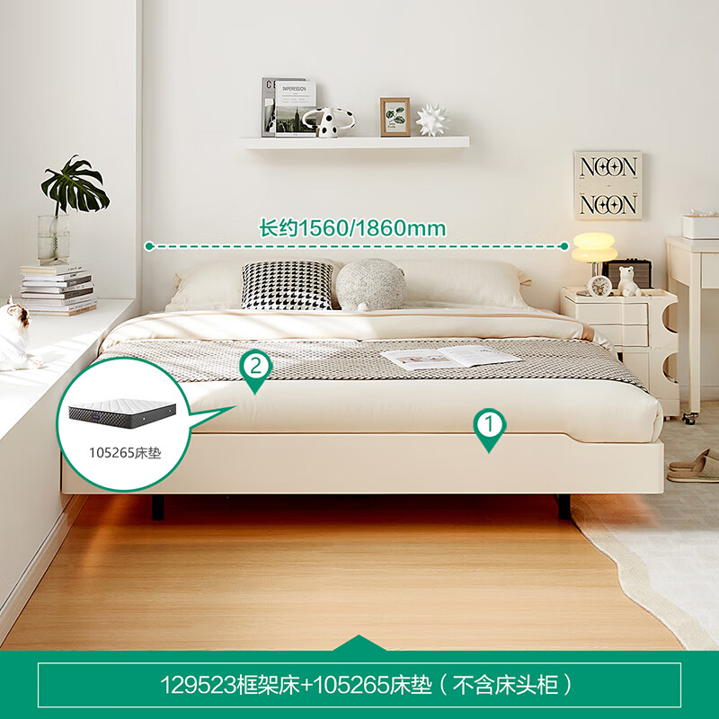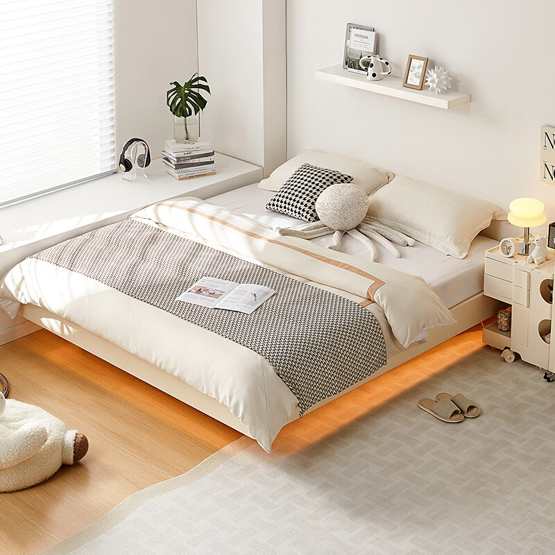 全友家居 无床头床榻榻米双人床1.8x2米小户型卧室奶油风悬浮床129523价格:2527.14元!