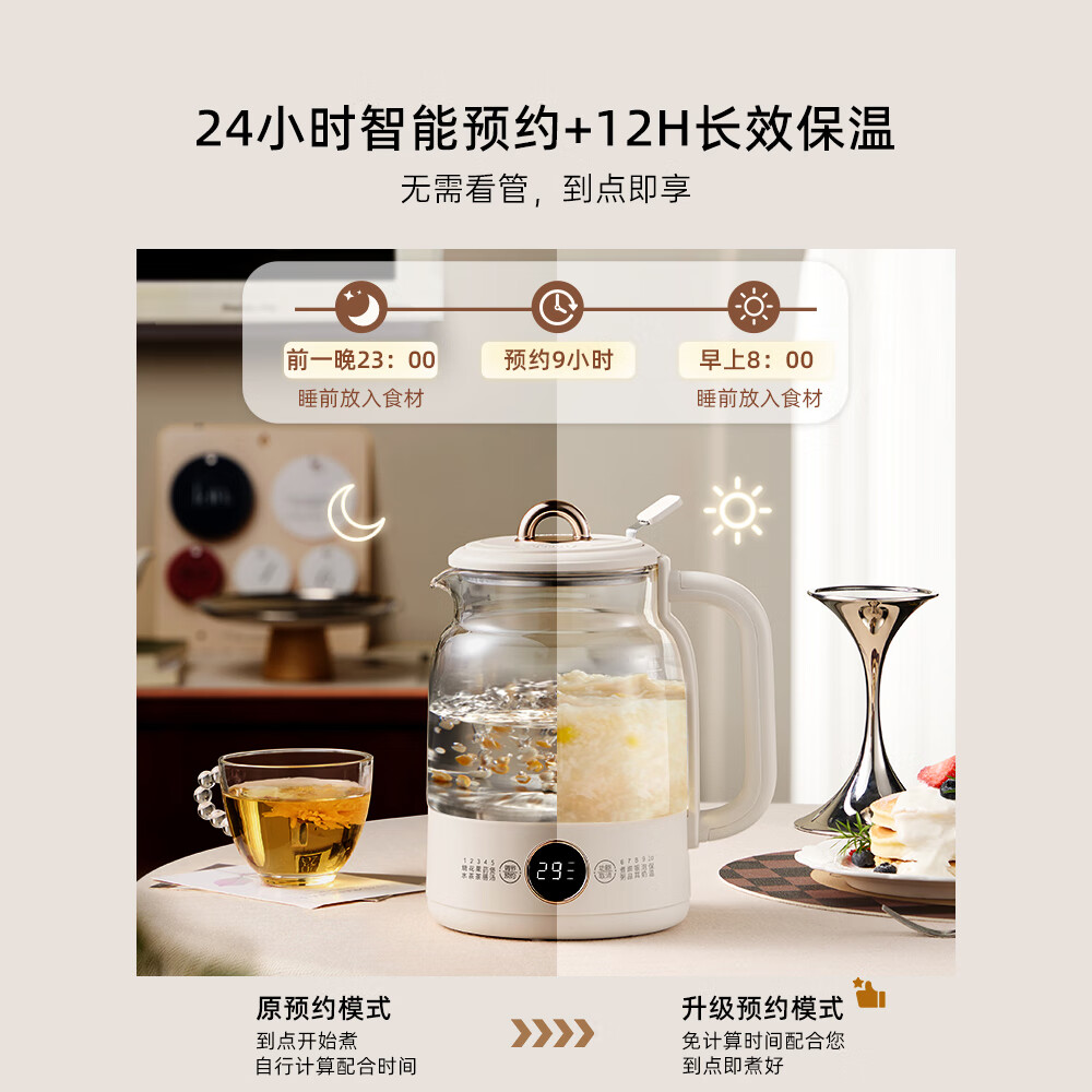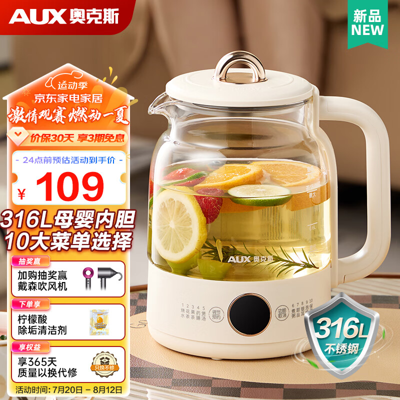 奥克斯(AUX)养生壶 1.2L煮茶壶烧水壶 可拆卸大茶篮 办公室智能预约恒温电热水壶 保温花茶壶 ASH-08A206 米白色(316L不锈钢) 1.2L价格:139.00元!