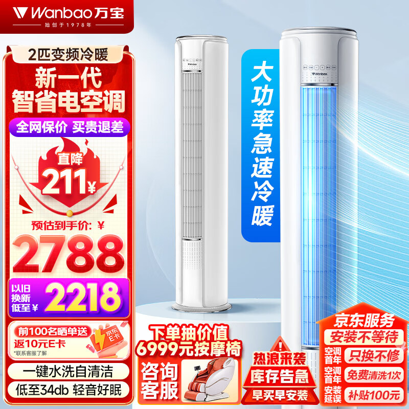 万宝空调2匹柜机 新一级能效变频冷暖 大风量省电圆柱立式客厅卧室空调柜机KFR-51LW/BPWB1-N1价格:2788.00元!