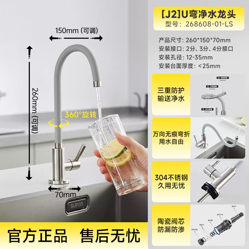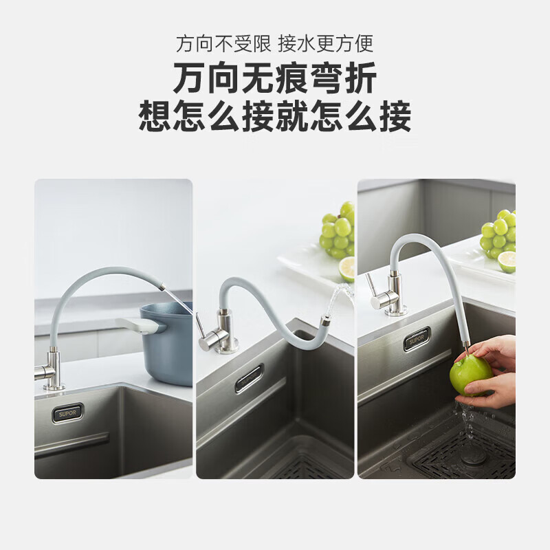 苏泊尔(SUPOR)万向可弯折定型净水器水龙头 厨房不锈钢直饮纯净水单冷龙头234分价格:129.00元!