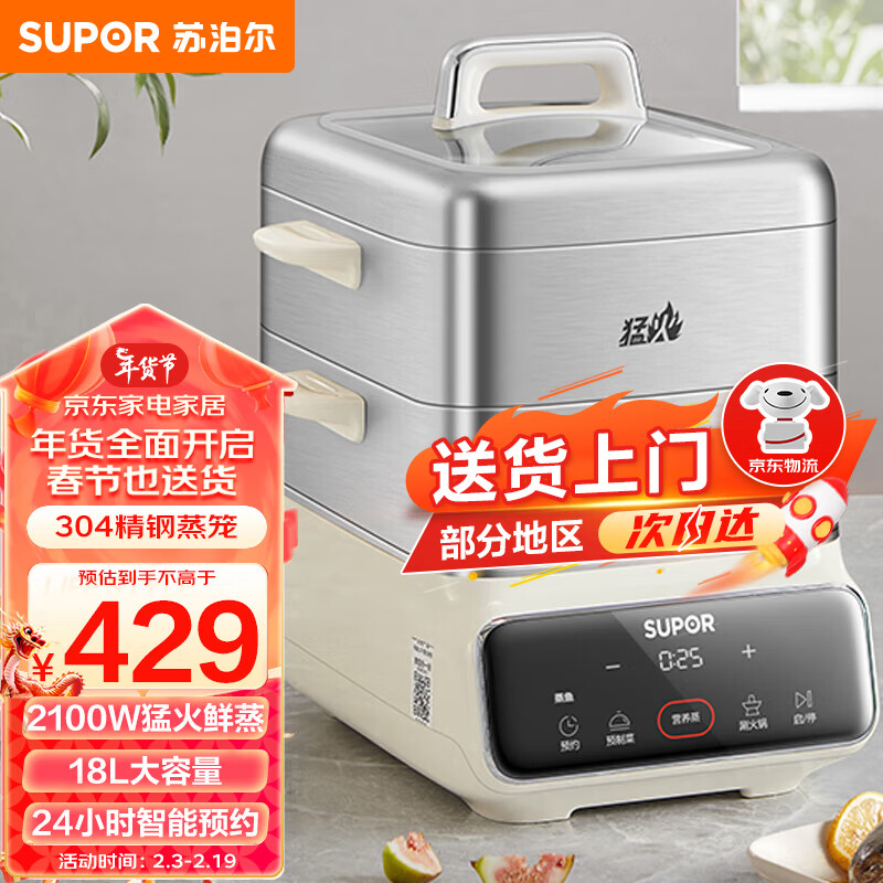 苏泊尔(SUPOR)电蒸锅 蒸炖锅 电煮锅电火锅 多功能锅 蒸包子锅 电热锅双层 2100W ZN32FC813价格:429.00元!