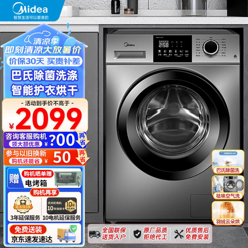 美的(Midea)10公斤家用大容量全自动洗衣机 洗烘一体 wif智控 巴氏除菌 变频电机 羽绒服洗 MD100VC133WY价格:2099.00元!