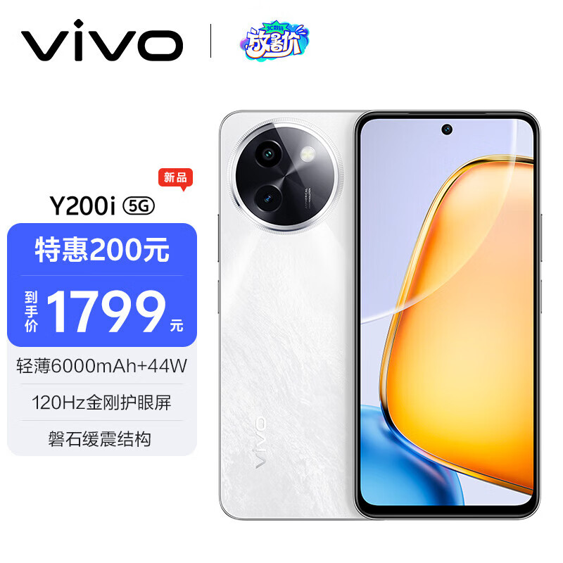 vivo Y200i 12GB+512GB 冰川白 轻薄6000mAh 120Hz?刚护眼屏 双扬300%??量 5G 拍照 手机价格:1999.00元!