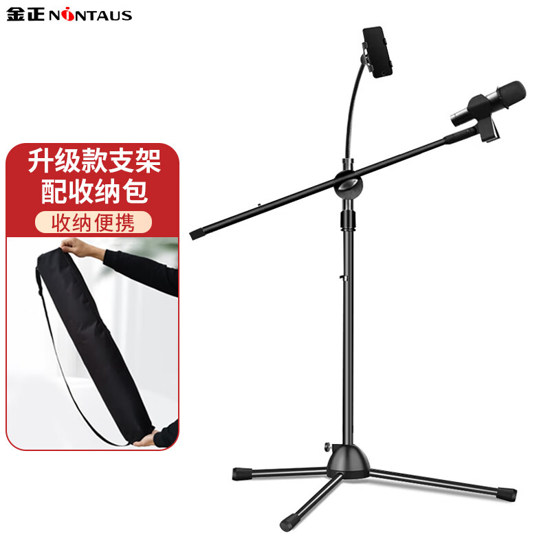 金正(NINTAUS)HY-103B 升级版话筒支架麦克风支架手机直播支架演唱支架 360°旋转三脚伸缩支架价格:159.00元!